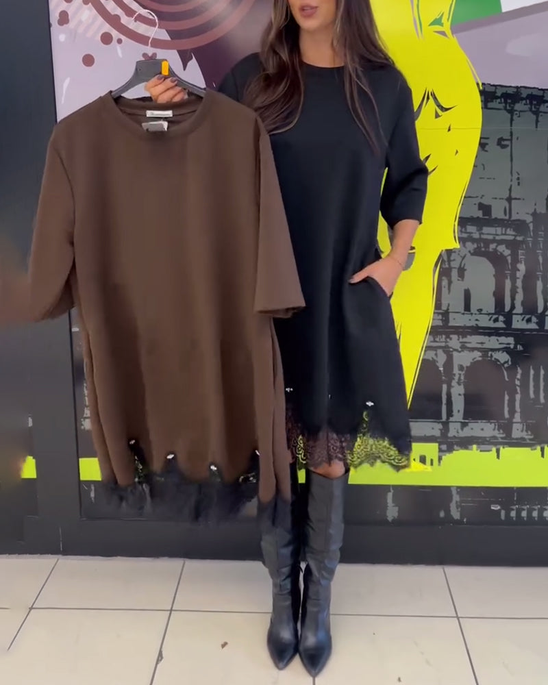 Elevate Your Everyday Style with our Casual Shift Dress, crafted from soft Cotton Blends for ultimate comfort. Perfect for Fall and Winter, this knee-length dress features a classic Round Neck and elegant Lace details, making it a versatile choice for daily wear.