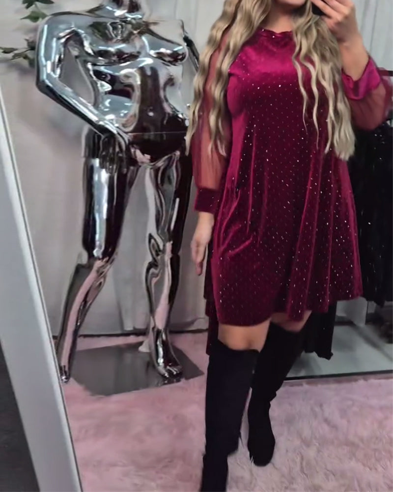Discover the perfect blend of style and comfort with this knee-length shift dress. Crafted from luxurious velvet, it features a classic round neckline and long regular sleeves, making it an ideal choice for fall and winter outings.